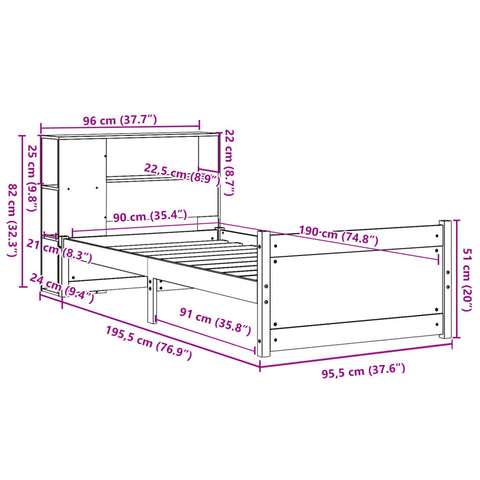 Get a better restful night's sleep from this bookcase bed! It makes a welcoming addition to any bedroom. Stable and long-lasting frame: Solid pinewood is known for its strength and durability. Its straight grains and distinctive knots contribute to its rustic charm. Slatted base for optimal support: The bed frame is equipped with a slatted base for support and breathability for your mattress. Ample storage space: This bookcase headboard offers ample storage space to keep books, decorative items, or personal belongings within easy reach, reducing clutter in the bedroom.Practical footboard: The footboard not only contributes to the overall stability of the bed frame, providing a safe sleeping environment, it also secures your mattress in place and prevents blankets, sheets and other bedding from falling off the end of the bed, maintaining a neat appearance.Space saving: This headboard is a space-saving option that can replace the need for a bedside table, helping maximise your bedroom space, and making it ideal for small or limited spaces. Good to know:A mattress is not included with this bed. We do offer a various selection of mattresses. You can check our shop for a matching mattress.
