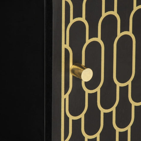 - Material: Solid mango wood with black finish, engineered wood, iron