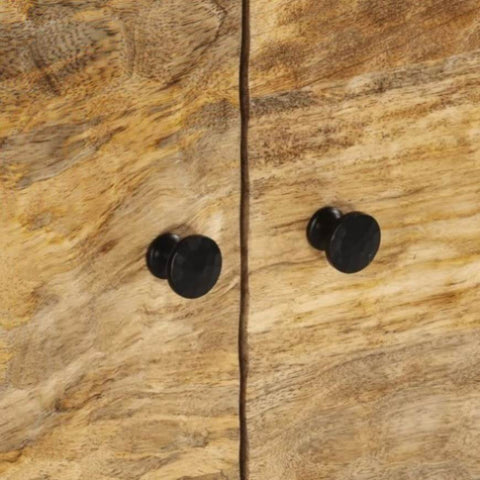 - Material: Solid mango wood with natural finish, engineered wood, iron