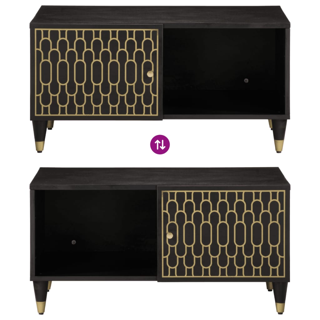 Add a touch of elegance to your living room with this stylish coffee table. Solid mango wood: Solid mango wood is a strong, tropical hardwood that makes sturdy furniture. Its beautiful wood grains make every piece of furniture slightly different from the next. Made of solid mango wood, the side table is durable and stable.Ample storage space: This sofa table offers ample storage space to keep your essentials well organised and within reach.Sturdy tabletop: The sturdy tabletop of the living room table is perfect for placing your drinks, food and other decorative items.Practical door: Keep your essentials free from dust by hiding them behind the door of this couch table.Iron legs: The iron legs add a calm style to your interior while ensuring stability. Good to know:Each item is unique with variations in colours and grains. The delivery is random, ensuring the exclusivity and individuality of your product.