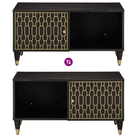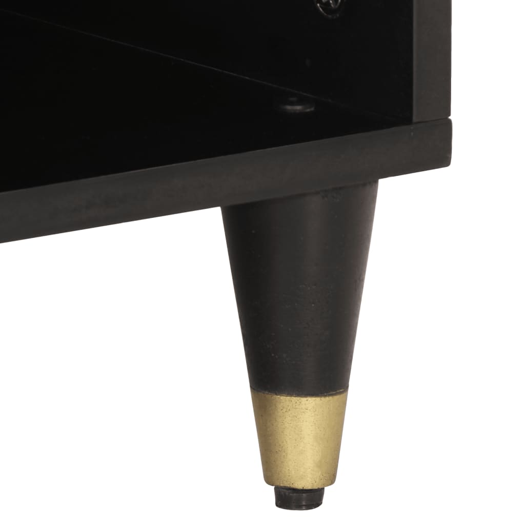 - Material: Solid mango wood with black finish, engineered wood, iron
