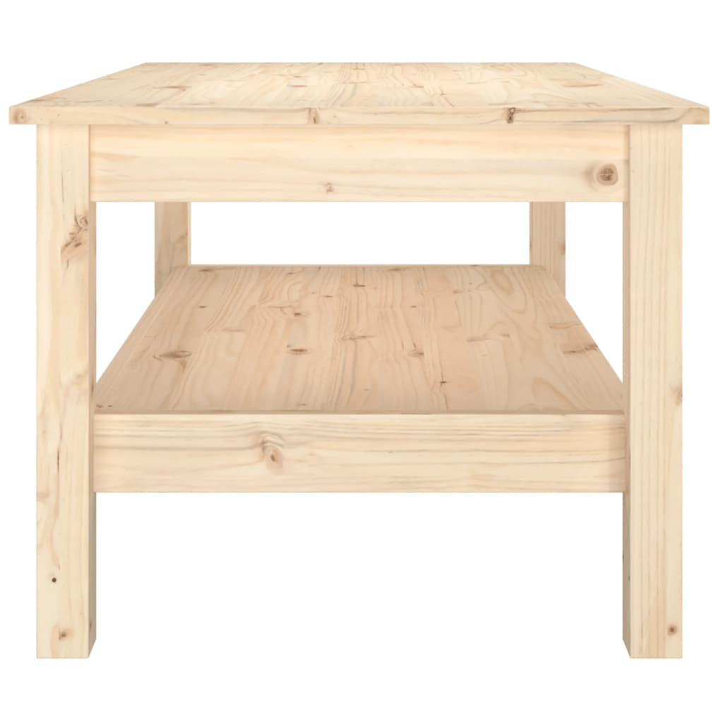 Add a touch of elegance to your home with this stylish wooden coffee table. Solid pine wood: Solid pine wood is a beautiful natural material. Pine wood has a straight grain, and the knots give the material its signature, rustic look.Stable frame: The wooden frame ensures sturdiness and stability.Additional storage space: The side table has an additional storage shelf. So, you can keep your magazines, books, remote controls and more.Sturdy tabletop: The sturdy tabletop is perfect for placing your drinks, food and other decorative items. Note:Each product comes with an assembly manual in the box for easy assembly.