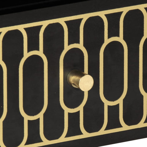 - Material: Solid mango wood with black finish, engineered wood, iron