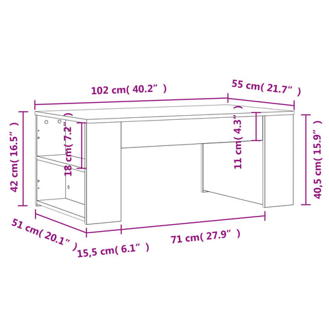 Coffee Table Black 102x55x42 cm Engineered Wood 831854