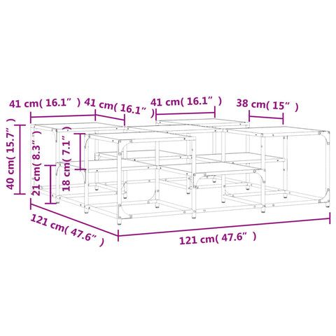 Decorate your living room with this stylish coffee table, it easily blends with furniture in any style at your house. Durable material: The engineered wood is of exceptional quality with smooth surface and also features strength, stability and resistance to moisture. Made of engineered wood, the side table is easy to clean.Sturdy tabletop of 2 heights: This sofa table is designed with 2 tabletop heights for a layered look, offering ample surface space for books, decorative items, and other daily essentials.Adjustable feet: The adjustable feet with plastic pads keep the living room table balanced on uneven ground and increase stability.Metal frame: The metal frame adds an industrial style to your interior while ensuring durability and stability.