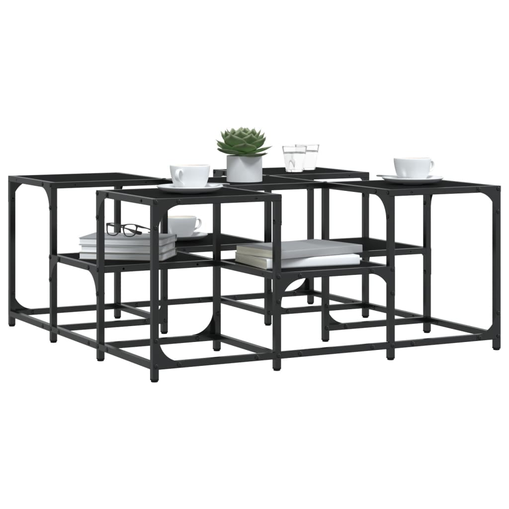 Decorate your living room with this stylish coffee table, it easily blends with furniture in any style at your house. Durable material: The engineered wood is of exceptional quality with smooth surface and also features strength, stability and resistance to moisture. Made of engineered wood, the side table is easy to clean.Sturdy tabletop of 2 heights: This sofa table is designed with 2 tabletop heights for a layered look, offering ample surface space for books, decorative items, and other daily essentials.Adjustable feet: The adjustable feet with plastic pads keep the living room table balanced on uneven ground and increase stability.Metal frame: The metal frame adds an industrial style to your interior while ensuring durability and stability.