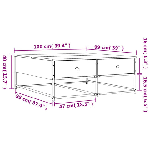 Add a touch of elegance to your living room with this stylish coffee table. Durable material: The side table is made of engineered wood. The engineered wood is of exceptional quality with a smooth surface and also features strength, stability, and resistance to moisture.Ample storage space: This sofa table features 2 drawers, offering ample storage space to keep your essentials well organised and within reach.Stable tabletop: The stable tabletop of the living room table is perfect for placing your drinks, food and other decorative items.Sturdy frame: The metal frame of this couch table ensures sturdiness and stability.