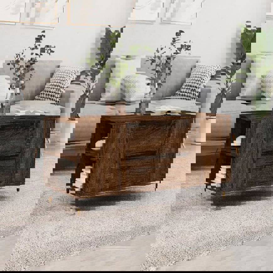 Coffee Table Brown Oak 102x44.5x50 cm Engineered Wood 830995