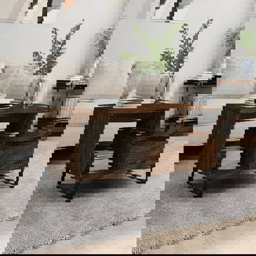 Coffee Table Brown Oak 90x49x45 cm Engineered Wood 831035