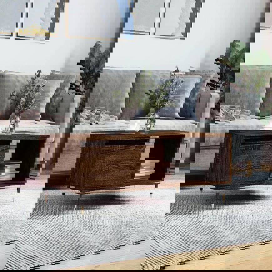 Coffee Table Brown Oak 90x50x36.5 cm Engineered Wood 830563