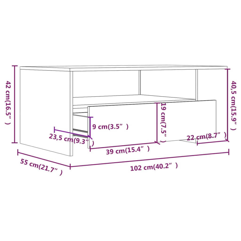Coffee Table Grey Sonoma 102x55x42 cm Engineered Wood 816935