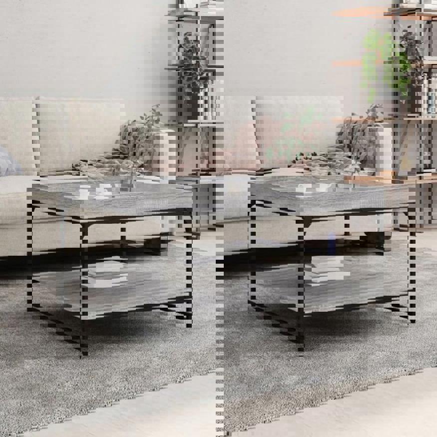 Coffee Table Grey Sonoma 80x80x45 cm Engineered Wood and Iron 832816