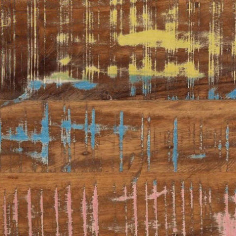 - Material: Solid reclaimed wood with a mixed colour finish, powder-coated iron