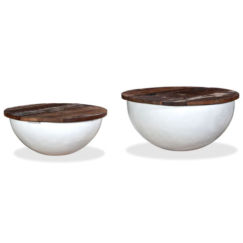 Coffee Table Set 2 Pieces Solid Reclaimed Wood White Bowl Shape 245256