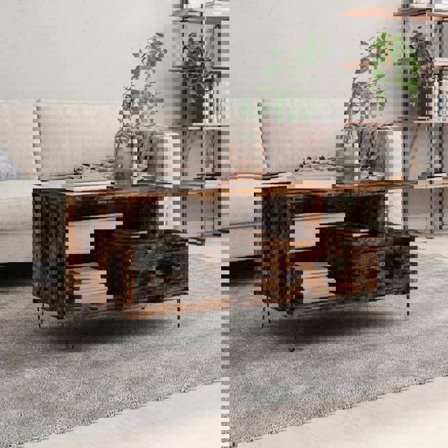 Coffee Table Smoked Oak 90x49x45 cm Engineered Wood 831025