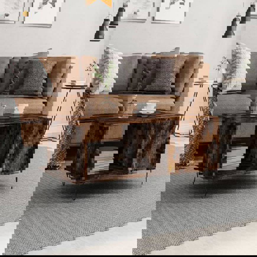 Coffee Table Smoked Oak 90x50x40 cm Engineered Wood 829489