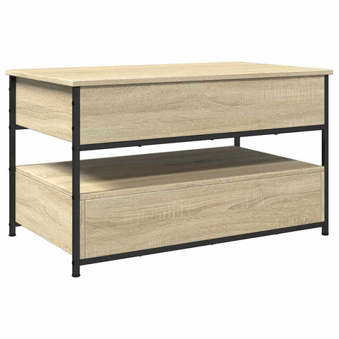 Add a touch of elegance to your living room with this stylish coffee table. Durable material: The engineered wood is of exceptional quality with smooth surface and also features strength, stability and resistance to moisture.Lift-top design: The tabletop of this sofa table can be smoothly lifted to a comfortable height, converting it to a spot where you can work or dine.Ample storage space: The living room table with 2 drawers has ample storage space beneath the top for a hidden compartment, so you can store your often-used items and keep them away from dust.Adjustable feet: The centre table is equipped with 4 adjustable feet that can protect your floor from scratches and keep it stable on the uneven floor.Sturdy frame: The metal frame of this couch table ensures sturdiness and stability.