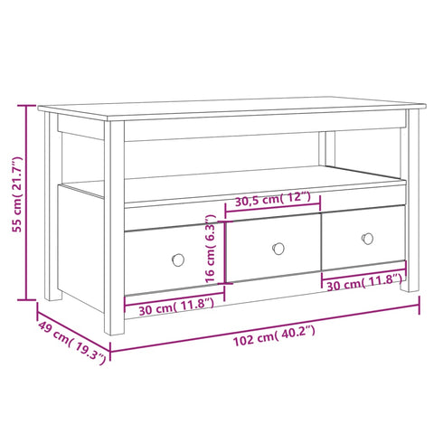 Coffee Table White 102x49x55 cm Solid Wood Pine 820932