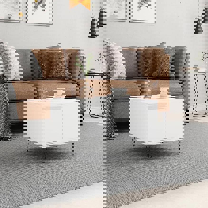 Add a touch of elegance to your living room with this stylish coffee table. Durable material: The engineered wood is of exceptional quality with smooth surface and also features strength, stability and resistance to moisture. Made of engineered wood, the side table is easy to clean with a damp cloth.Ample storage space: This sofa table with a drawer offers ample storage space to keep your essentials well organised and within reach.Sturdy tabletop: The sturdy tabletop is perfect for placing your drinks, food and other decorative items.Metal legs: The metal legs add a modern and calm style to your interior while ensuring stability.