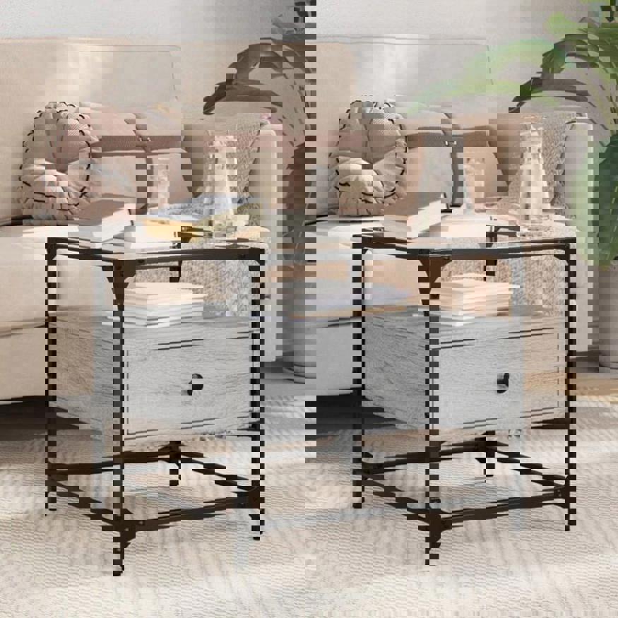 Coffee Table with Glass Top Grey Sonoma 50x50x45 cm Steel 846052