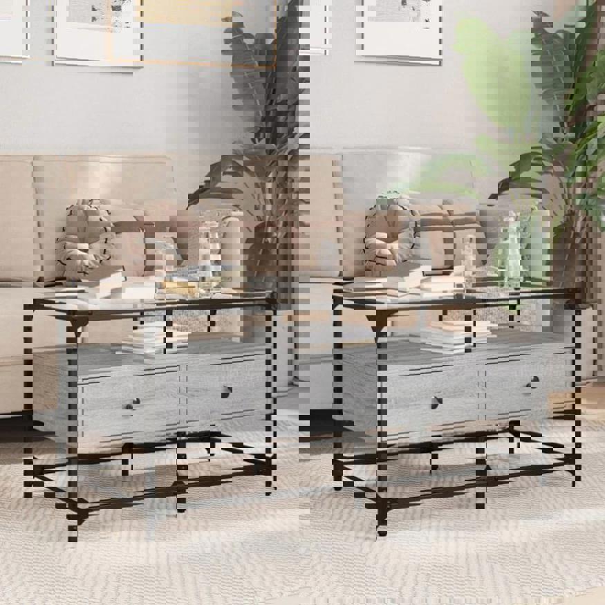 Coffee Table with Glass Top Grey Sonoma 98.5x50x45 cm Steel 846047