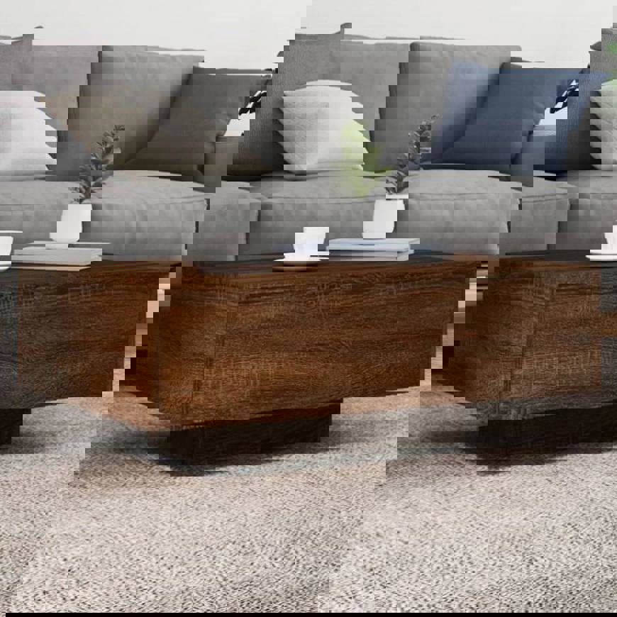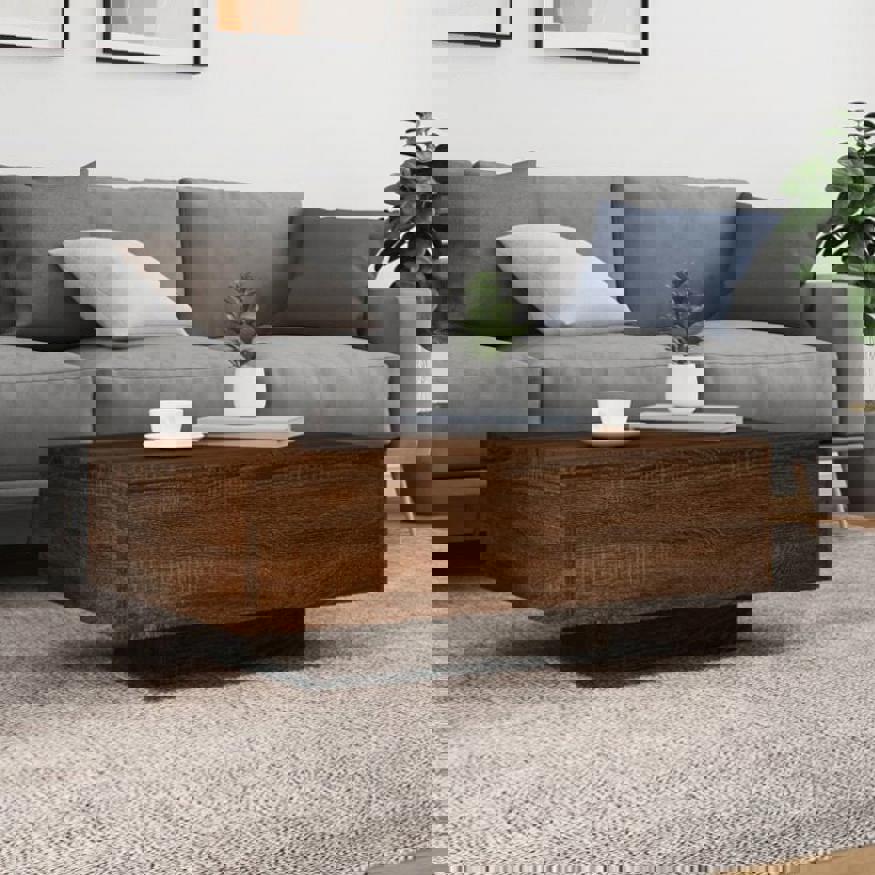 Coffee Table with LED Lights Brown Oak 85x55x31 cm 836615