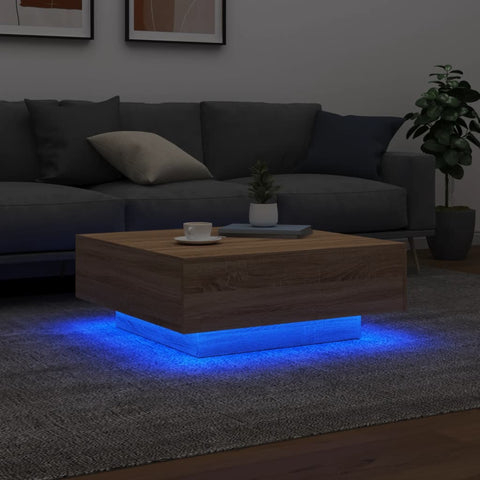 Coffee Table with LED Lights Sonoma Oak 80x80x31 cm 836590