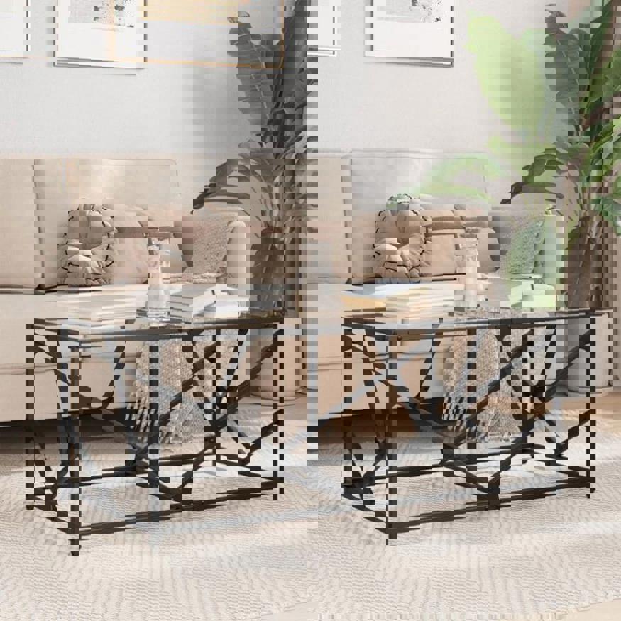 Coffee Table with Transparent Glass Top 98.5x50x41 cm Steel 845996
