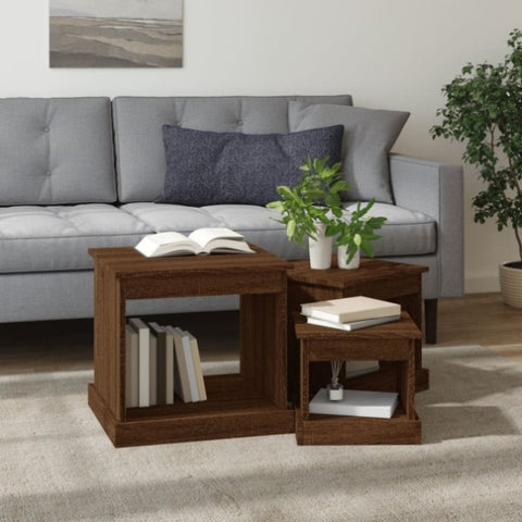Coffee Tables 3 pcs Brown Oak Engineered Wood 816495