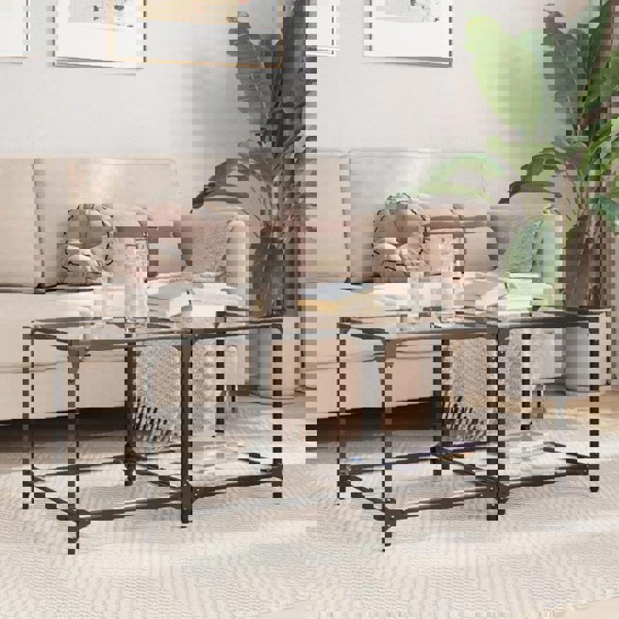 Coffee Tables with Transparent Glass Top 2 pcs 50x50x40 cm Steel 845971