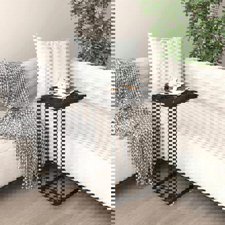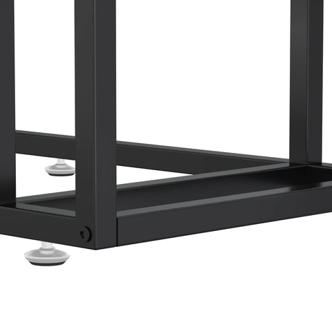 This computer side table is perfect for bringing a simplistic yet stylish appearance to your living space. This end table is made of tempered glass and powder-coated iron, making it exceedingly sturdy and stable. The tabletop provides a stable and secure surface for placing your drinks, food and other essentials. The couch table is easy to clean with a damp cloth.