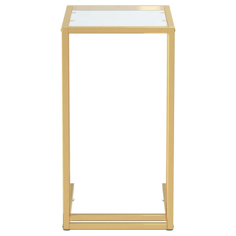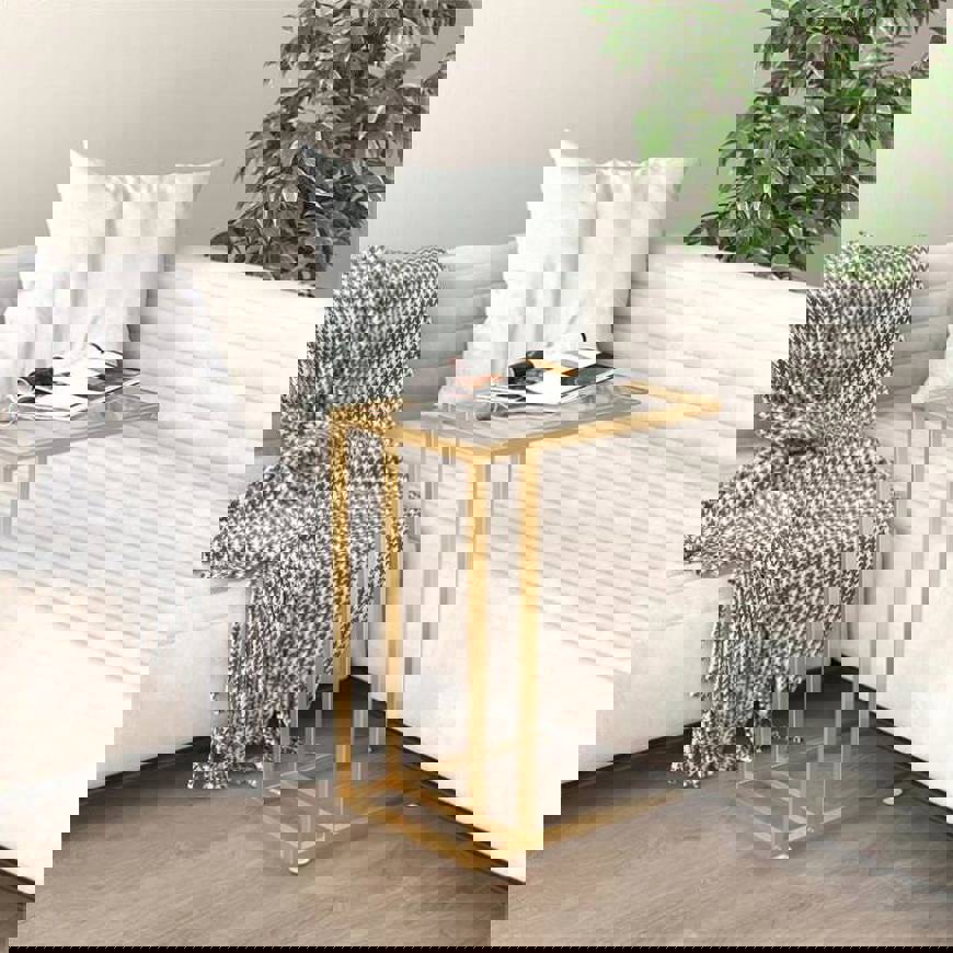 This computer side table is perfect for bringing a simplistic yet stylish appearance to your living space. This end table is made of tempered glass and powder-coated iron, making it exceedingly sturdy and stable. The tabletop provides a stable and secure surface for placing your drinks, food and other essentials. The couch table is easy to clean with a damp cloth.