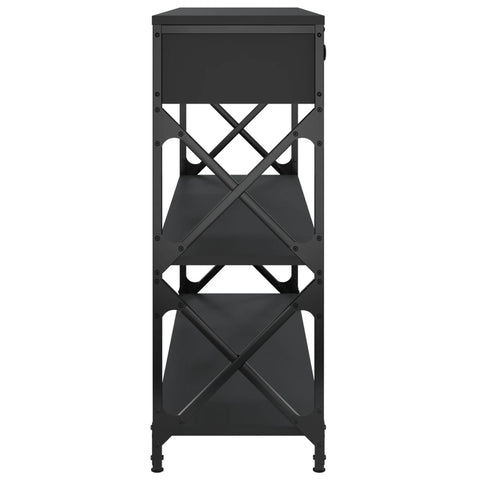 Add a touch of elegance to your entryway, living room, or hallway with this stylish console table. Durable material: The engineered wood is of exceptional quality with smooth surface and also features strength, stability and resistance to moisture. Made of engineered wood, the sofa table is easy to clean.Ample storage space: The hall table offers ample storage space for keeping your magazines, books, decorative items, and other daily essentials well-organised and within reach.Adjustable feet: Four adjustable feet with plastic pads keep the hallway table balanced on uneven ground and increase stability.Metal frame: The metal frame adds an industrial style to your interior while ensuring durability and stability. And the entry table has X-frame crossbars for added stability, so you don't have to worry about wobbling on the floor. Warning:To prevent it being overturned, this product must be used with the provided wall attachment device.
