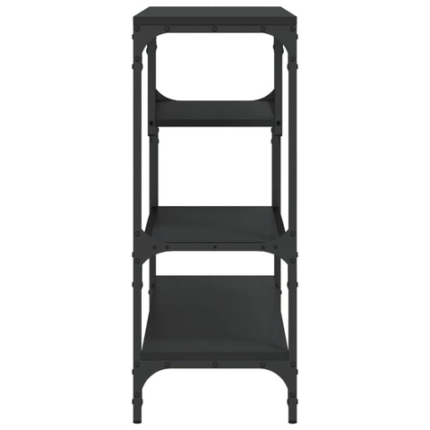 Add a touch of elegance to your entryway, living room, or hallway with this stylish console table. Durable material: The engineered wood is of exceptional quality with smooth surface and also features strength, stability and resistance to moisture. Made of engineered wood, the sofa table is easy to clean.Ample storage space: The hall table with several shelves offers ample storage space for keeping your magazines, books, decorative items, and other daily essentials well-organised and within reach.Adjustable feet: The adjustable feet with plastic pads keep the hallway table balanced on uneven ground and increase stability.Metal frame: The metal frame adds an industrial style to your interior while ensuring durability and stability. Warning:To prevent it being overturned, this product must be used with the provided wall attachment device.