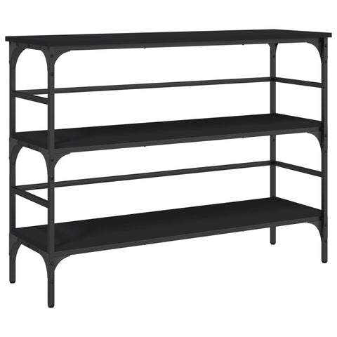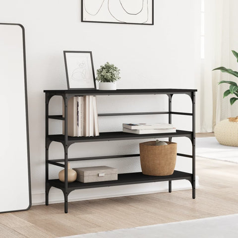 Add a touch of elegance to your entryway, living room, or hallway with this stylish console table. Durable material: The engineered wood is of exceptional quality with smooth surface and also features strength, stability and resistance to moisture. Made of engineered wood, the sofa table is easy to clean.Ample storage space: The hall table with several shelves offers ample storage space for keeping your magazines, books, decorative items, and other daily essentials well-organised and within reach.Adjustable feet: The adjustable feet with plastic pads keep the hallway table balanced on uneven ground and increase stability.Metal frame: The metal frame adds an industrial style to your interior while ensuring durability and stability. Warning:To prevent it being overturned, this product must be used with the provided wall attachment device.