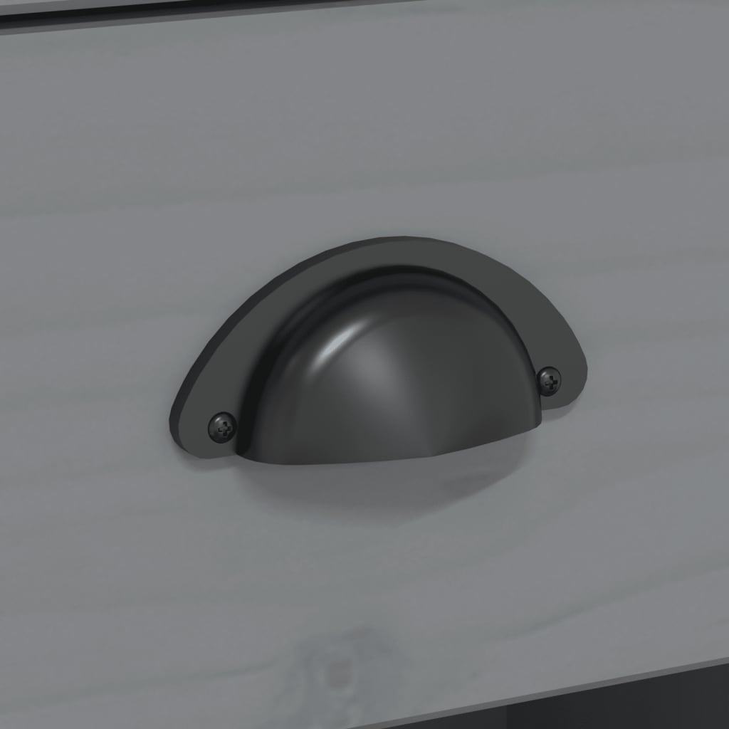 - Features 2 drawers with metal handles
