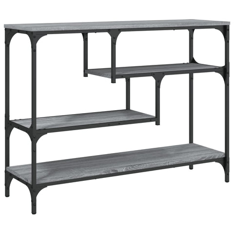 Add a touch of elegance to your entryway, living room, or hallway with this stylish console table. Durable material: The engineered wood is of exceptional quality with smooth surface and also features strength, stability and resistance to moisture. Made of engineered wood, the sofa table is easy to clean.Ample storage space: The hall table with several shelves offers ample storage space for keeping your magazines, books, decorative items, and other daily essentials well-organised and within reach.Adjustable feet: The adjustable feet with plastic pads keep the hallway table balanced on uneven ground and increase stability.Metal frame: The metal frame adds an industrial style to your interior while ensuring durability and stability. Warning:To prevent it being overturned, this product must be used with the provided wall attachment device.