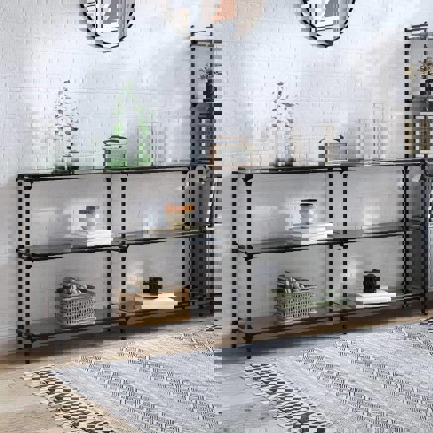 Console Table with Black Glass Top 194.5x30x81 cm Steel 846035