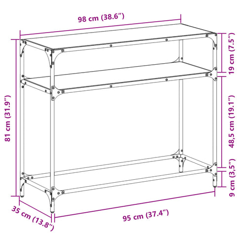 Console Table with Black Glass Top98x35x81 cm Steel 846027