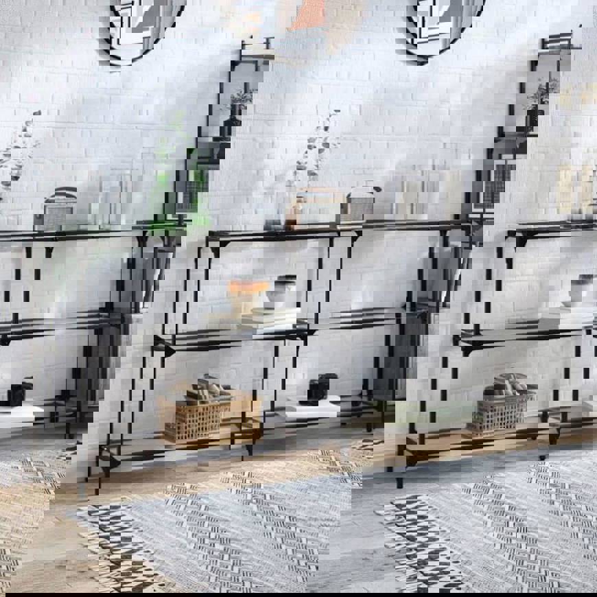 Combining functionality and beauty, this console table will be the focal point of your room. Glass top: The top of the sofa table provides a visible and ample surface to place vases, potted plants, or other decorative items.Sturdy and stable frame: The stainless steel frame of the hall table ensures sturdiness and stability.Easy maintenance: This hallway table with stain-resistant surface is easy to wipe clean and you can effortlessly keep the table looking its best.Simple design: This hallway console table has a simple and modern design that complements any room decor. Warning:To prevent it from tipping over, this product must be used with the provided wall attachment device.