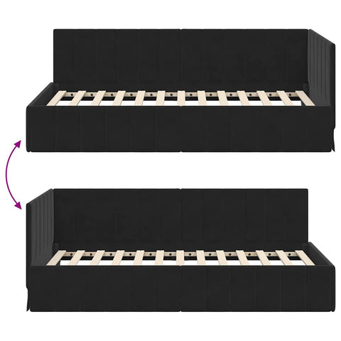 Corner Bed Frame with Headboard Black 100 x 200 cm Velvet 42016322