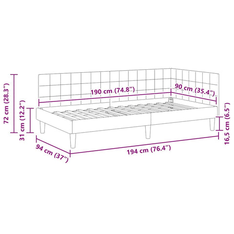 Corner Bed Frame with Headboard Turquoise 90 x 190 cm Velvet 42016426