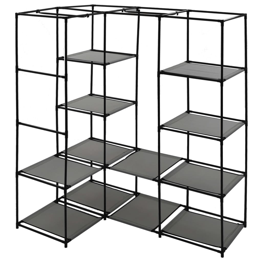 This practical corner clothes rack provides an ideal storage solution for your clothes and shoes. It is characterized by a sturdy iron frame, making the clothes rack exceedingly durable. Compared to a normal fabric cabinet, the structure of the corner fabric cabinet is even more stable. The space-saving wardrobe optimises the usage of corner, and therefore offers large storage space and hanging options, to keep your bags, shoes and small items organised and within reach. The fabric cover with zippers will protect your clothes from dirt and dust.