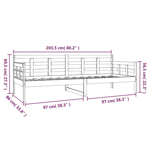 Day Bed without Mattress Black Solid Wood Pine 80x200 cm 820366