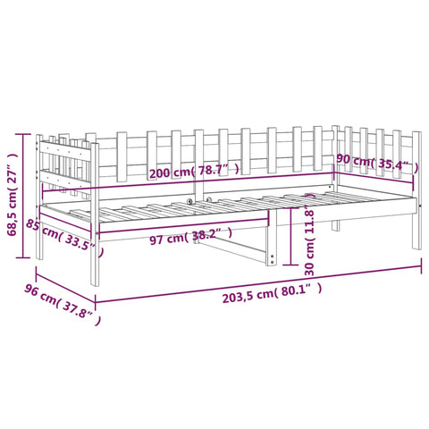 Day Bed without Mattress Grey 90x200 cm Solid Wood Pine 820758