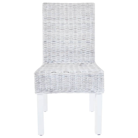 This Kubu rattan dining chair set with simple design and perfectly coordinated colour makes your dining room shining in new splendour. The mango wood frames and the genuine weave make the chairs not only structurally solid but also aesthetically pleasing. The rattan covered seats are very comfortable and easy to clean. If you are looking for something to complement your kitchen or dining room decor, this attractive handwoven rattan chair set will be your top choice. Delivery includes 6 dining chairs.