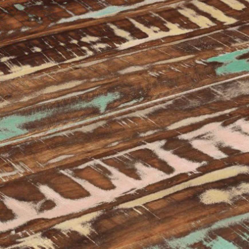 This trendy wooden dining table is meant to be a distinctive addition to your kitchen and dining room. Solid reclaimed wood: Solid reclaimed wood consists of reused timbers such as teak, mango wood, pinewood, and beech. These materials are recycled from old buildings such as factories, sheds, and boats. This makes it a very environmentally friendly option in furniture manufacturing. As every piece is handmade and unique colours will vary for each product. You might see some blue, green, and sometimes, orange, red or pink.Sturdy tabletop: The sturdy tabletop is a perfect spot for placing your drinks, vases, and other decorative items.Stable frame: The strong powder-coated steel frame ensures the sturdiness and stability of the dining room table. Note:The grains vary from piece to piece, making each piece unique. The delivery is random, ensuring the exclusivity and individuality of your product.