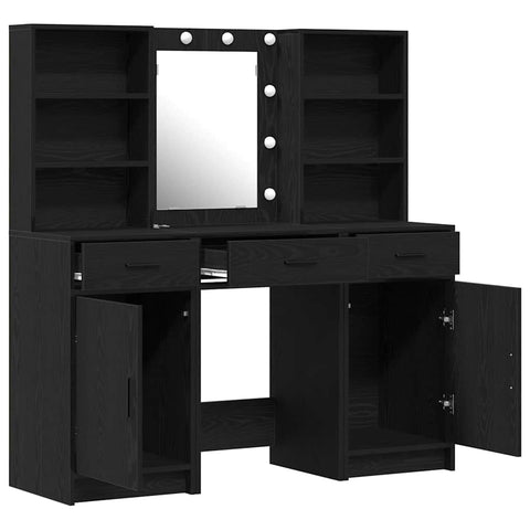 Dressing Table Set with Drawer 3 pcs Black Oak Engineered Wood 3334291
