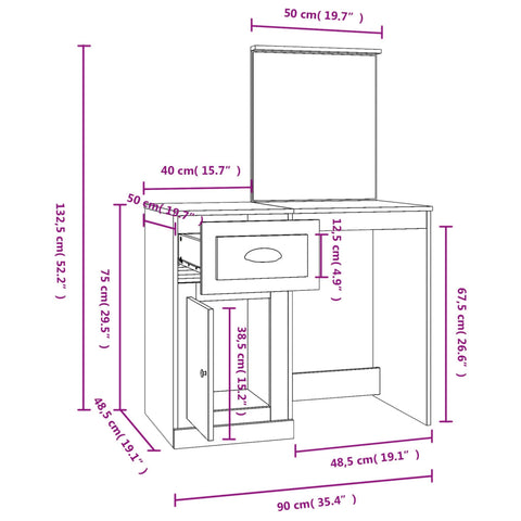 Dressing Table with Mirror Concrete Grey 90x50x132.5 cm Engineered Wood 816764
