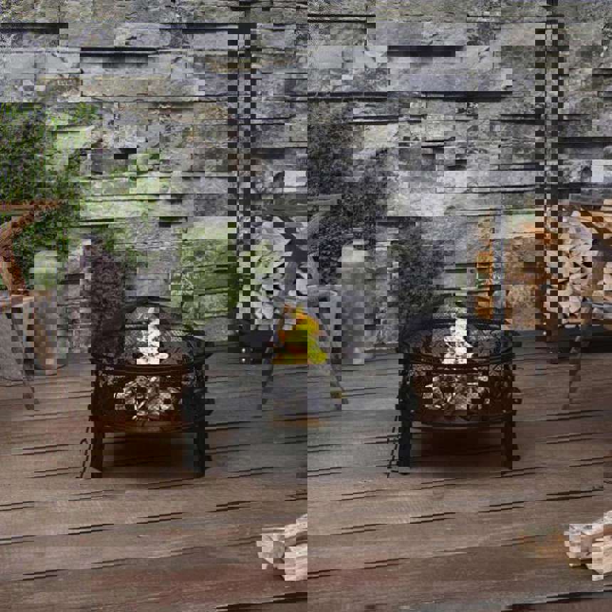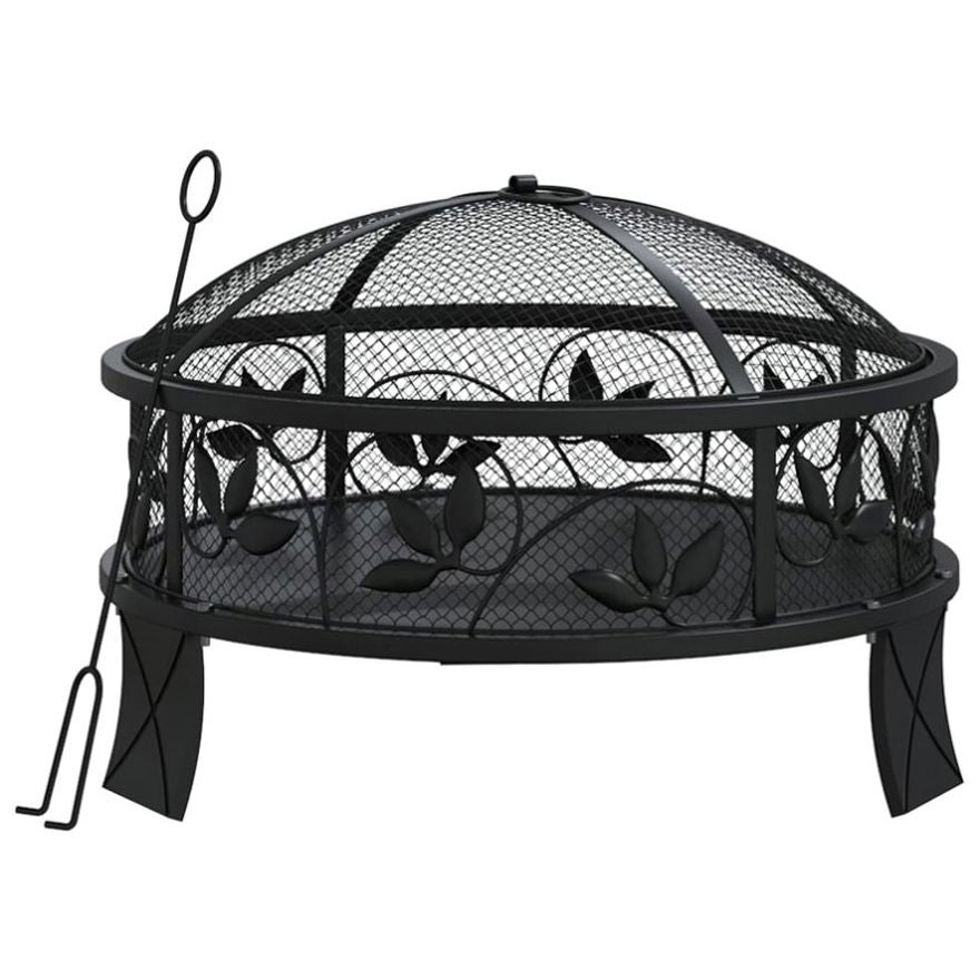 This fire pit is ideal for creating some extra warmth and a cosy atmosphere in your garden or on the patio. Strong material: Steel is an exceptionally hard and strong material. It offers sturdiness and stability. Made of steel, the heater is excellent in absorbing and radiating heat.Practical design: Featuring a large and deep bowl, this fireplace allows for a large fire for you and your family to enjoy for hours. Additionally, there is a convenient ring in the mesh cover so that you can carry it easily.Safe accessories: The mesh allows you to watch the burning fire, and encloses the fire for safety as well as preventing sparks and debris from flying out. Also, the included metal poker can be used for both removing the mesh cover and rearranging the logs. Note:It can only be used outdoors. Do not touch the product when there is still burning wood inside or short after it.